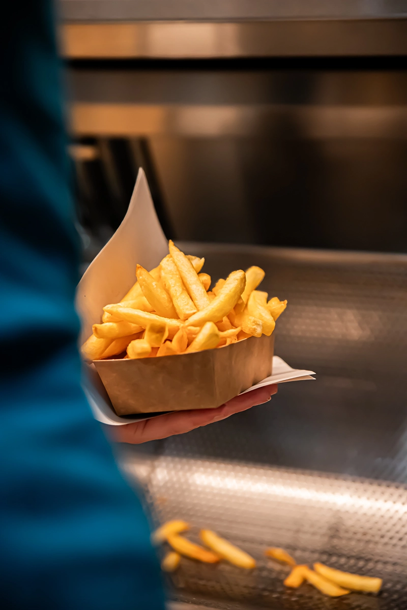 We bakken onze frieten in 100% rundsvet. Dit geeft onze frietjes meer smaak en zorgt voor een knapperige buitenkant.